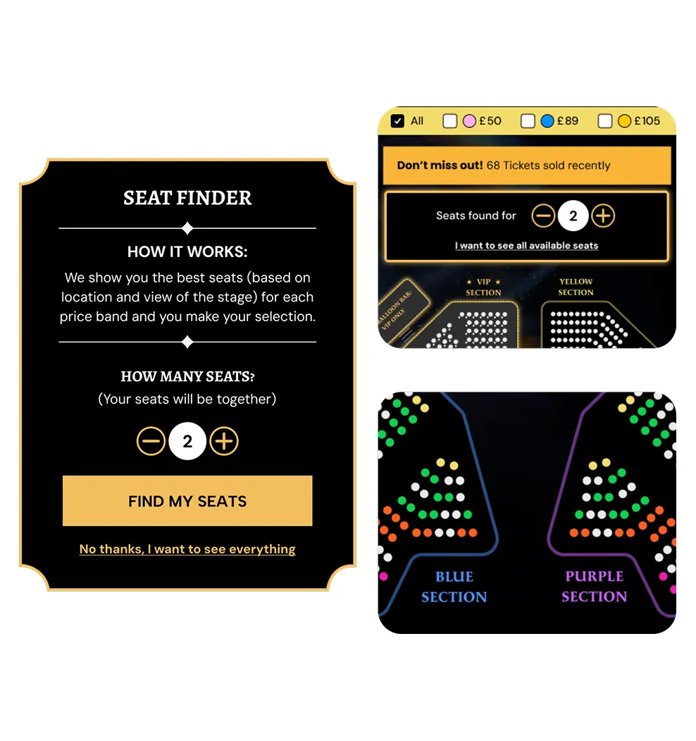 Deliver a booking and checkout experience that lives directly on your website and reflects your brand, while Spektrix continues to manage ticket inventory, pricing, availability.